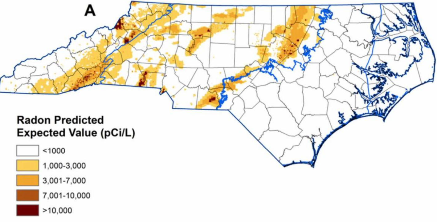 Seventy-seven out of North Carolina’s 100 Counties have high risk of radon pollution in buildings. (6) This risk is high enough that when a home or other building is sold in North Carolina, the law requires it must be inspected for Radon. Since schools are never sold, they are never tested.